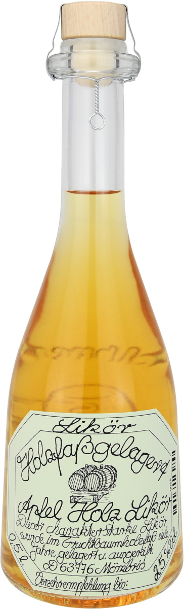 Da ich als gelernter Schreiner schon immer die Auffassung vertreten habe, dass das Aroma und der Fruchtgeschmack im Kern eines Baumstamms abgelagert wird, habe ich aus dem Kern Holz, Apfelbaum Holzfässer von der Firma Eder, in Bad Dürkheim anfertigen lassen. Darin habe ich dann unseren Apfelbrand mit Apfelsaft als Likör circa zehn Jahre gelagert. In dieser langen Lagerzeit haben sich die Aromen aus dem Apfelbaum Holz in den Likör hineingezogen und damit verheiratet. Das Ergebnis ist ein Charakter, starker holzbetonte Likör geworden.